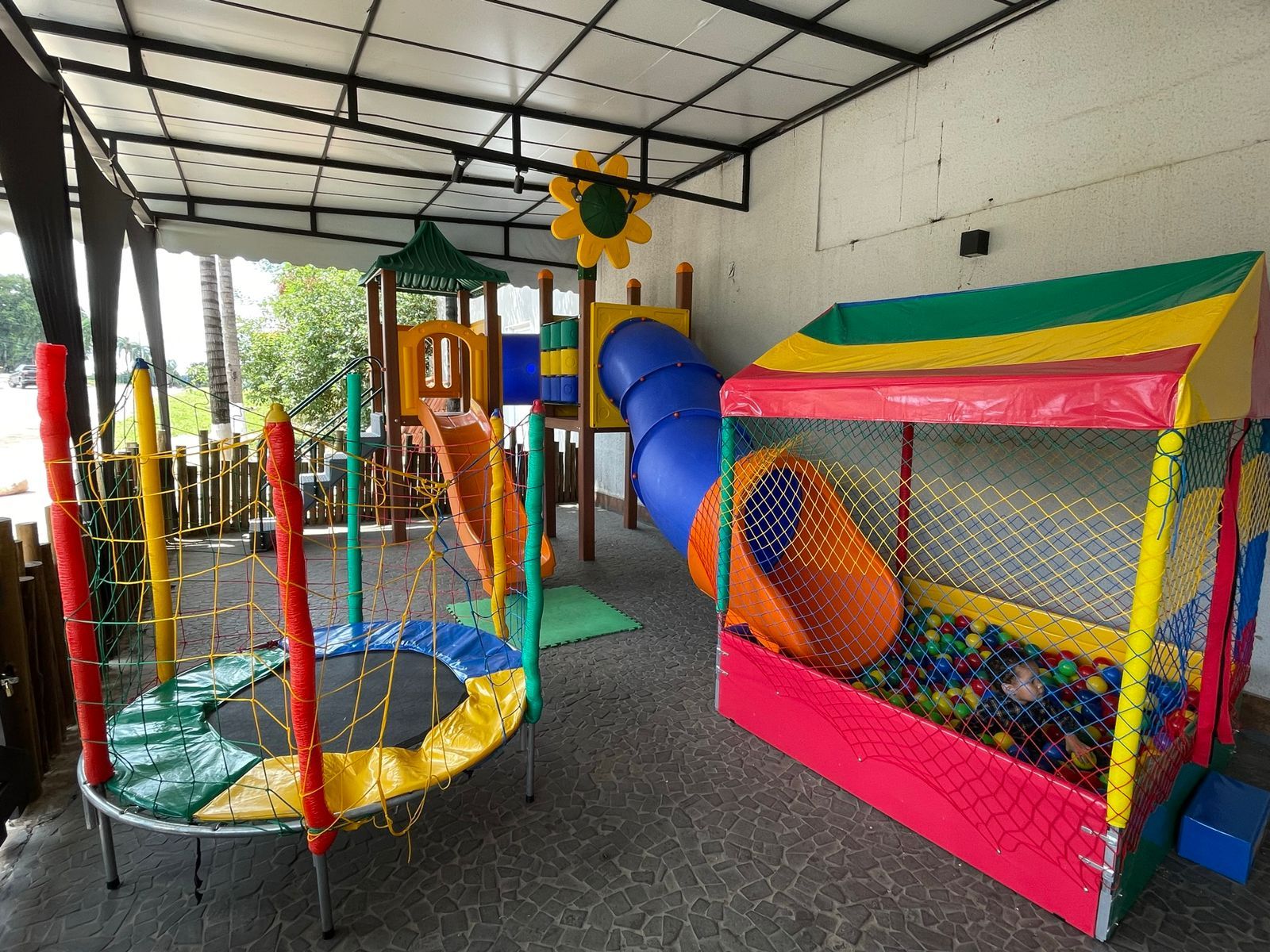 Brinquedão destaca-se pelo visual multicolorido e atrativo, estimulando brincadeiras coletivas que promovem a alegria e a socialização entre crianças.